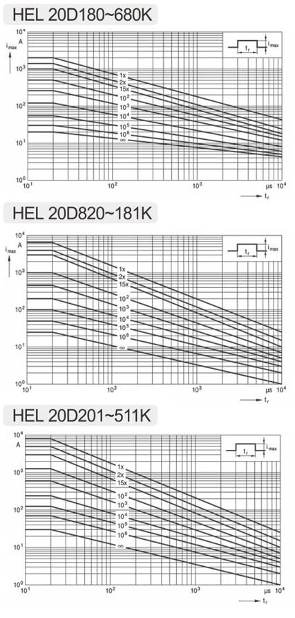 備注:上表KH超強(qiáng)型“電壓沖擊”40次僅適用于壓敏電壓430V及其以上規(guī)格的產(chǎn)品。