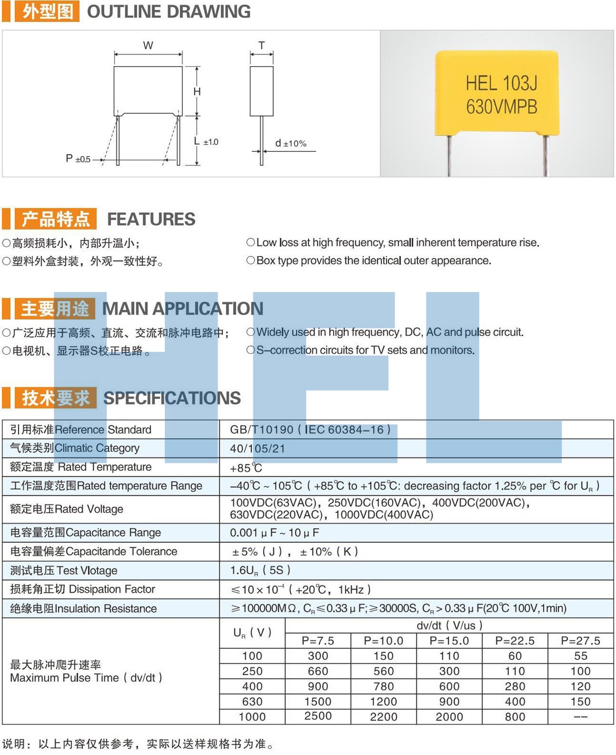 MPB塑料外盒金屬化聚丙烯薄膜電容器 MKP21